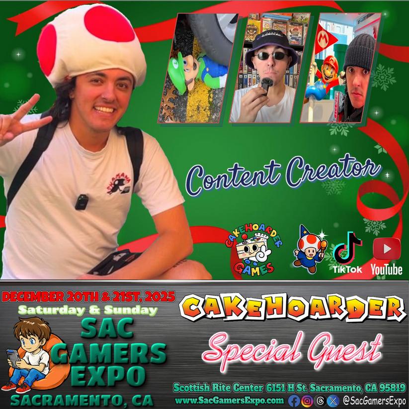 Cake Hoarder has been making content on YouTube for the last 4+ years & has already made a big impact on the retro scene. He is known for is amazing collection of rare Nintendo game displays & promotional items, discovering an unreleased GameCube game prototype, collecting every NTSC North American Game Cube game released, & has recently opened his own retail game store. Cake’s least favorite Nintendo character is Luigi, & he has proven this time & again by destroying Luigi toys & plush dolls every time he does not pull a special item out of a Nintendo blind bag; in a long running series on his YouTube shorts/TikTok.