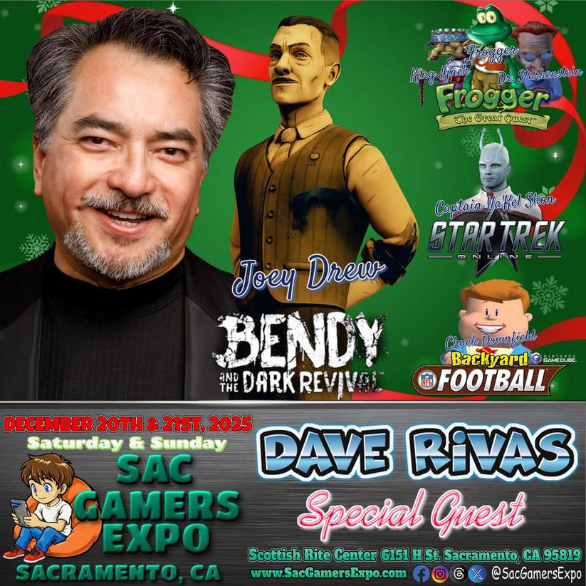 Dave Rivas has been a professional actor, singer, comic, & voice over artist for over 25 years. He has a growing fan base for his work as the voice of Joey Drew from Bendy & the Dark Revival as well as the multiple characters he voices for Star Trek Online, primarily the voice of Va'Kel Shon, Captain of The U.S.S. Enterprise-F.