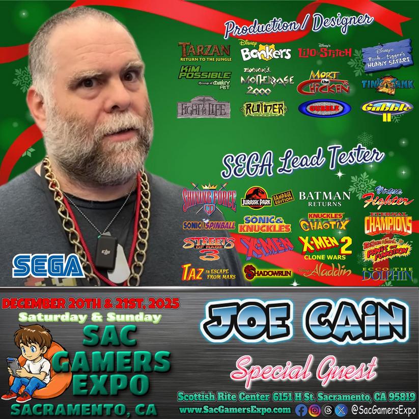 Joe Cain is a game/level designer, producer, & a former Sega of America lead/general tester with over 30 years of experience in the Video Game industry, from QA to Production & Creative Direction. He has worked with Sega of America, Atari, The 3DO Company, Digital Eclipse, Electronic Arts, App Ant Studios, GREE, IGT, & iWin. Joe was the lead/general tester on over 40 Sega Genesis titles including Ecco the Dolphin, Ecco: The Tides of Time, Eternal Champions, Disney’s Aladdin, X-Men, X-Men 2: Clone Wars, Sonic the Hedgehog: Spinball, Sonic & Knuckles, Taz in Escape From Mars, Shadowrun, Jurassic Park: Rampage Edition, Streets of Rage 3 & many more. Joe worked on game/level design & production on Gubble, Gubble 2, Disney’s Bonkers, Mort the Chicken, Disney's Tarzan: Return to the Jungle, Disney's Kim Possible: Revenge of Monkey Fist, Zaxxon's Motherbase 2000, Fight for Life, Ruiner Pinball, Tiny Tank & many other titles. Joe has spent the last 20 years working on online games & worked on Pogo.com for Electronic Arts for 8 years!